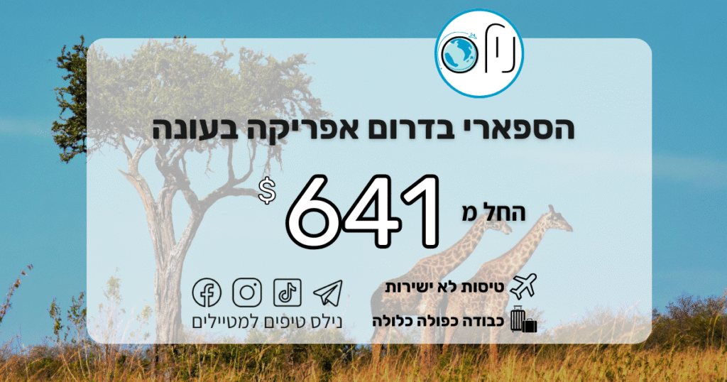 חיפוש חופשי ✈️ טיסות ליוהנסבורג בשיא העונה – החל מ־614$ בלבד כולל כבודה כפולה!סגרנו לכם דיל חורפי מצוין לדרום אפריקה 🇿🇦שילוב מושלם של ספארי מרהיב, אוכל מעולה, תרבות מגוונת וכמובן – מסע קניות רציני, עם הרבה מקום במזוודה. 🛫 חברות תעופה מובילות:Ethiopian Airlines 🔁 קונקשן נוח באדיס אבבה (אתיופיה) – בשני הכיוונים 🎒 מה כלול […]