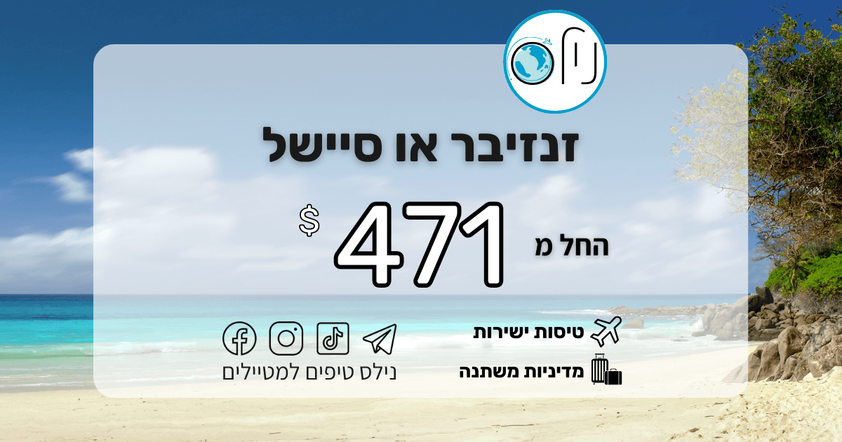קריסת מחירים לזנזיבר ולסיישל, טיסות לאיים האקזוטיים החל מ-471$ בלבד