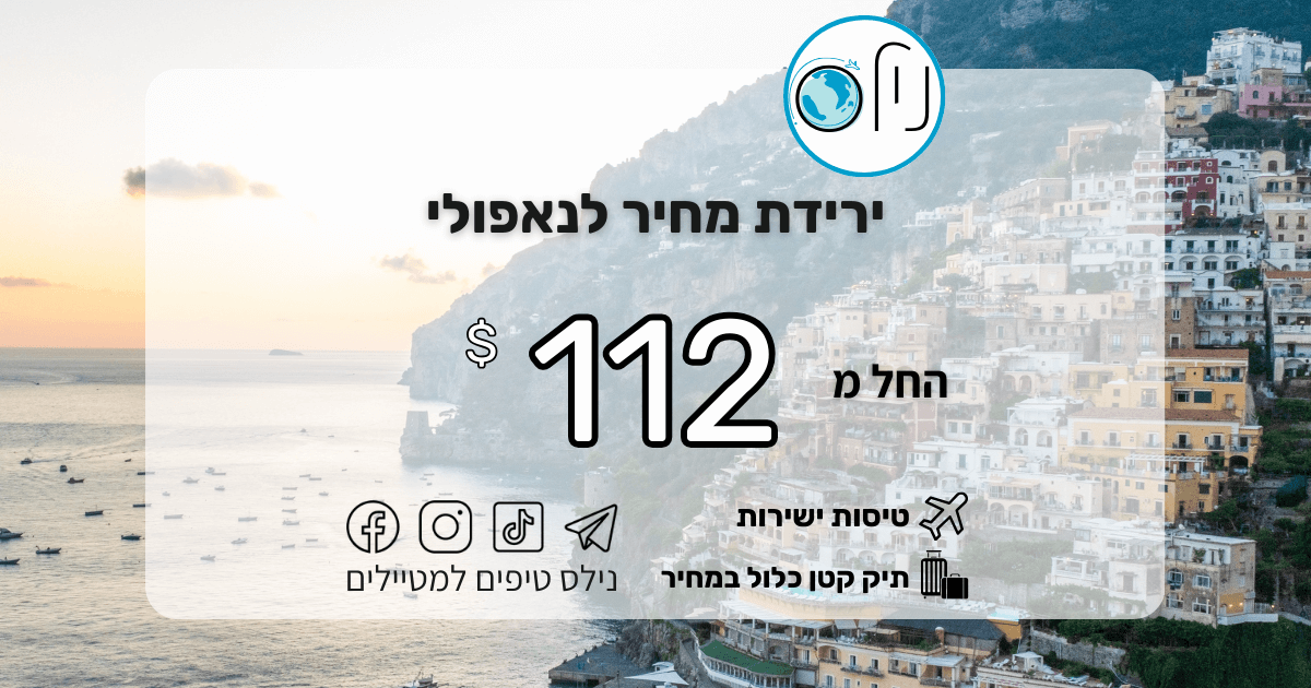 טיסות ישירות לנאפולי במחיר מצחיק החל מ-91 דולר הלוך ושוב